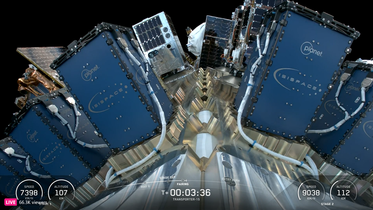 Hình ảnh cho thấy một phần trong số hàng chục vệ tinh sắp xếp trên khoang của sứ mệnh Transporter-15 khi tên lửa Falcon 9 đạt quỹ đạo. Ảnh: SpaceX
