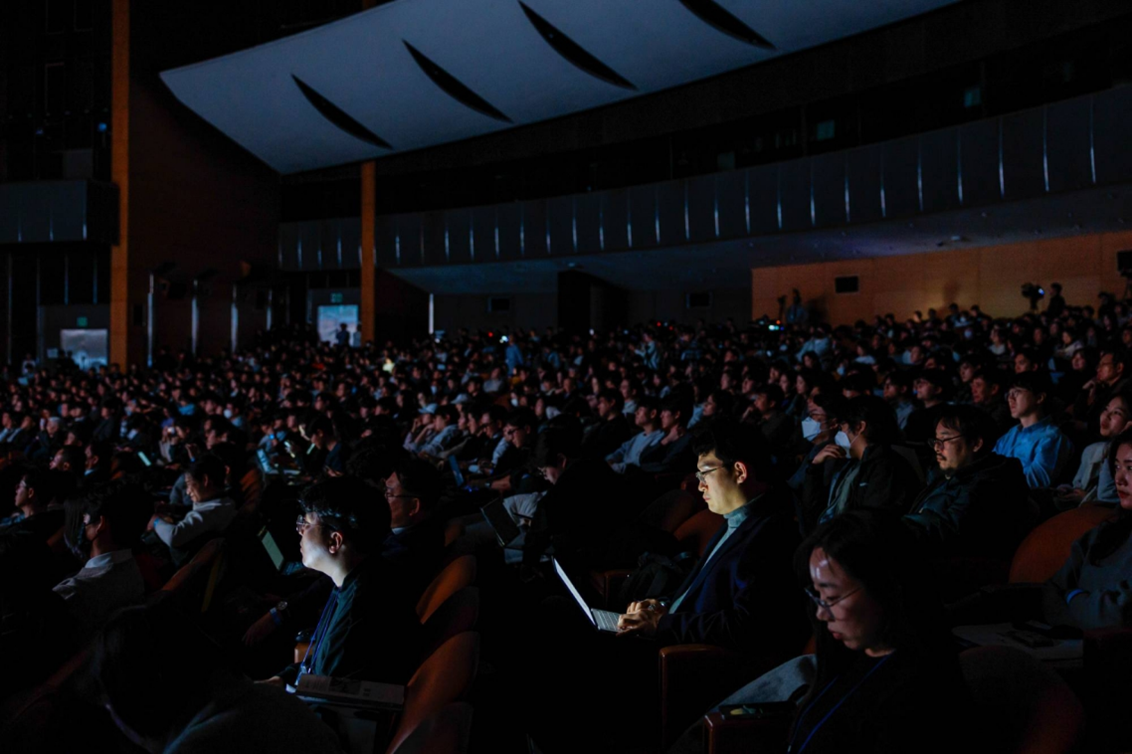 Khách tham dự lắng nghe tại sự kiện trình bày Mô hình AI nền tảng Tự chủ quốc gia đầu tiên do Bộ Khoa học và CNTT-TT Hàn Quốc tổ chức tại Seoul, ngày 30/12/2025. Ảnh: Bloomberg