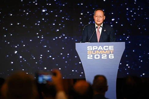 Bộ trưởng phụ trách Năng lượng và Khoa học & Công nghệ Tan See Leng phát biểu tại lễ khai mạc Space Summit lần đầu ngày 2/2. Ảnh: Shintaro Tay